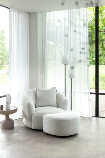 Der Sessel CERVOS ist ein kompakter, runder Drehsessel mit einem Durchmesser von 100 cm und einem bequemen 45 x 45 cm großen Kissen. Perfekt, um sich gemütlich hineinzukuscheln! Die weichen, runden Formen und der fließende Übergang von Arm- und Rückenlehne verleihen CERVOS eine organische Ausstrahlung, die in jedes Interieur passt. Dank der tiefen Sitzfläche genießt du optimalen Komfort. Da der Sessel niedrig ist, sind seine Beine nicht zu sehen. Das runde Design setzt sich elegant bis zur Rückenlehne fort, sodass CERVOS auch wunderbar frei im Raum platziert werden kann. Er ist in den Stoffen unserer Selected-Choices-Kollektion erhältlich. Es gibt ihn auch in einer größeren Variante und mit passendem Hocker.