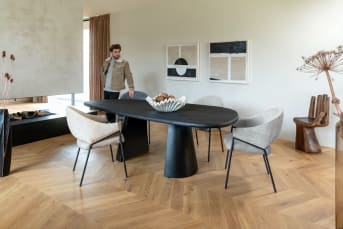 Der Sessel NOLAN in Anthrazit verleiht deinem Essbereich einen industriellen und zugleich stilvollen Touch. Der Stuhl ist wunderschön mit Lederfaserstoff Taurus auf der Sitzfläche und dem luxuriösen Wave-Stoff auf der Rückenlehne gepolstert. Wave ist ein Chenille-Stoff aus 100 % Polyester mit einem deutlich sichtbaren Rautenmuster. Der Stoff ist wunderbar weich und hat einen schönen Glanz. Sessel NOLAN hat eine schwarze Metallbasis. Du kannst NOLAN auch in Creme, Eis und Olive kaufen. Kombiniere verschiedenen Farben für einen spielerischen Effekt!