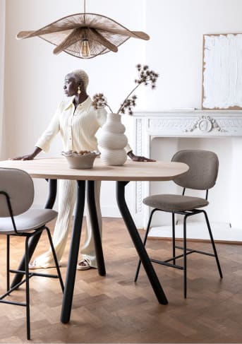 Ein ausgiebiges Frühstück, ein schnelles Mittagessen oder ein köstliches 3-Gänge-Abendessen - In jedem Fall kannst Du dich an diesem schönen runden Bartisch ARVADA mit einer Höhe von 92 cm erfreuen. Der Tresentisch hat eine Platte aus massiver Eiche in der Farbe Onyx mit einem Durchmesser von 125 cm. ARVADA glänzt mit einem zentralen schwarzen Metallbein. bist Du bereit für die schönsten Momente mit Familie und Freunden? An diesem runden Bartisch bist Du gold richtig! Auch mit einer größeren Tischplatte von 140 cm Durchmesser erhältlich!