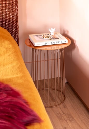 Der Beistelltisch Zora sticht heraus durch seine fröhliche orangefarbene Farbe, das stilvolle goldene Akzent auf der Tischplatte und das angesagte Design. Dieser Tisch ist aus 60% Metall (Gestell) und 40% Glas (Platte) gefertigt. Mit einem Durchmesser von 40 cm und einer Höhe von 52 cm ist Zora ideal als Beistelltisch im Wohnzimmer oder Nachttisch im Schlafzimmer und du kannst Zora perfekt mit anderen Beistelltischen und Poufs von COCOmaison kombinieren, um dein eigenes Set zusammenzustellen.