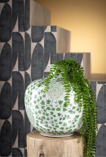 Füge mit der Yin-Vase von COCOmaison einen Hauch klassischen Stils in dein Zuhause ein. Diese Keramikvase ist von traditioneller chinesischer Kunst inspiriert und zeigt ein schönes Blumenmuster in einem zarten Grünton. Mit einer Höhe von 41 cm ist die Yin-Vase ein echter Blickfang in deinem Interieur. Ob du sie mit Blumen schmückst oder als dekoratives Einzelstück aufstellst – die Yin-Vase bringt sofort eine stimmungsvolle Atmosphäre in dein Zuhause!