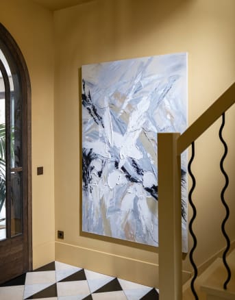 Bei diesem beeindruckenden Gemälde "Abstract Power" mit den Maßen von stolzen 120 x 180 cm sprüht die Energie förmlich vom Leinwand ab. Das Gemälde wurde von Hand auf Leinwand gemalt, und durch die dicken Farbschichten entsteht ein wunderschöner 3D-Effekt. Die verwendeten Farben sind Weiß, Schwarz, Grau und Beige. Das Gemälde besteht zu 30% aus Holz (Rahmen), zu 30% aus Stoff (Leinwand) und zu 40% aus Farbe und hat keinen Rahmen. Entdecke auch die anderen Gemälde in der Kollektion von COCOmaison!