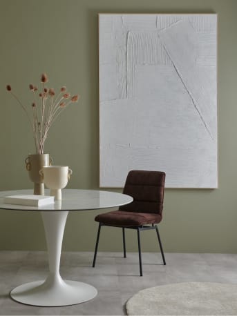 Dieses stilvolle 120 x 180 cm große Gemälde MASTER STROKES aus der Kollektion COCOmaison ist auf Leinwand gefertigt und mit einem 3D-Effekt handbemalt. Vor einer dunklen Wand kommt dieser minimalistische Blickfang besonders gut zur Geltung.